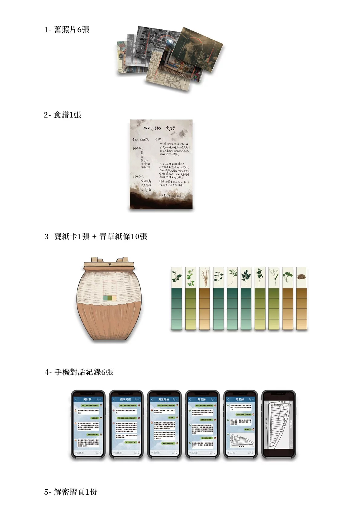 請確認遊戲盒中有下列 1~5項道具。