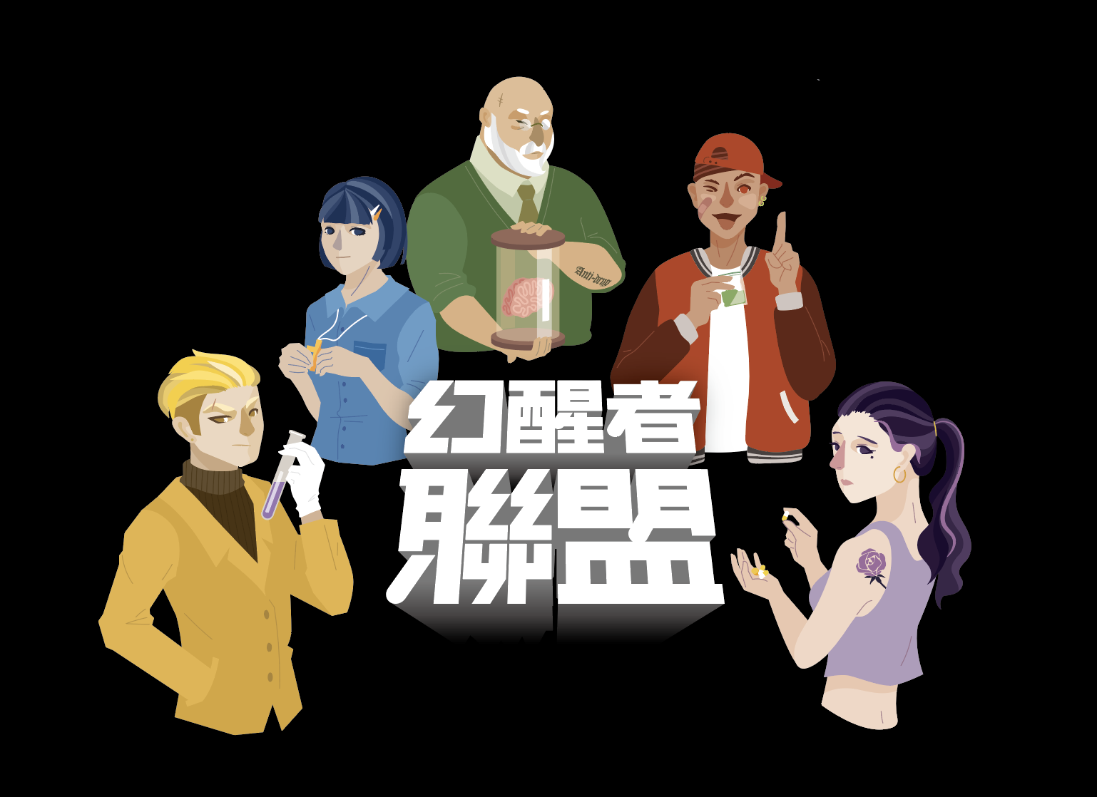 幻醒者聯盟》,是由台北市芙蓉扶輪社的全球獎助金計畫 #1990661 贊助,並委託聚樂邦開發。近年來,新興精神活性物質(New Psychoactive Substances,簡稱NPS)不斷推陳出新,包裝更是難以分辨,使得青少年易遭拐騙或誤食,造成難以磨滅的傷害。本遊戲期望讓參與者在遊戲過程中,更了解NPS的威脅,及面對誘惑的處遇態度。