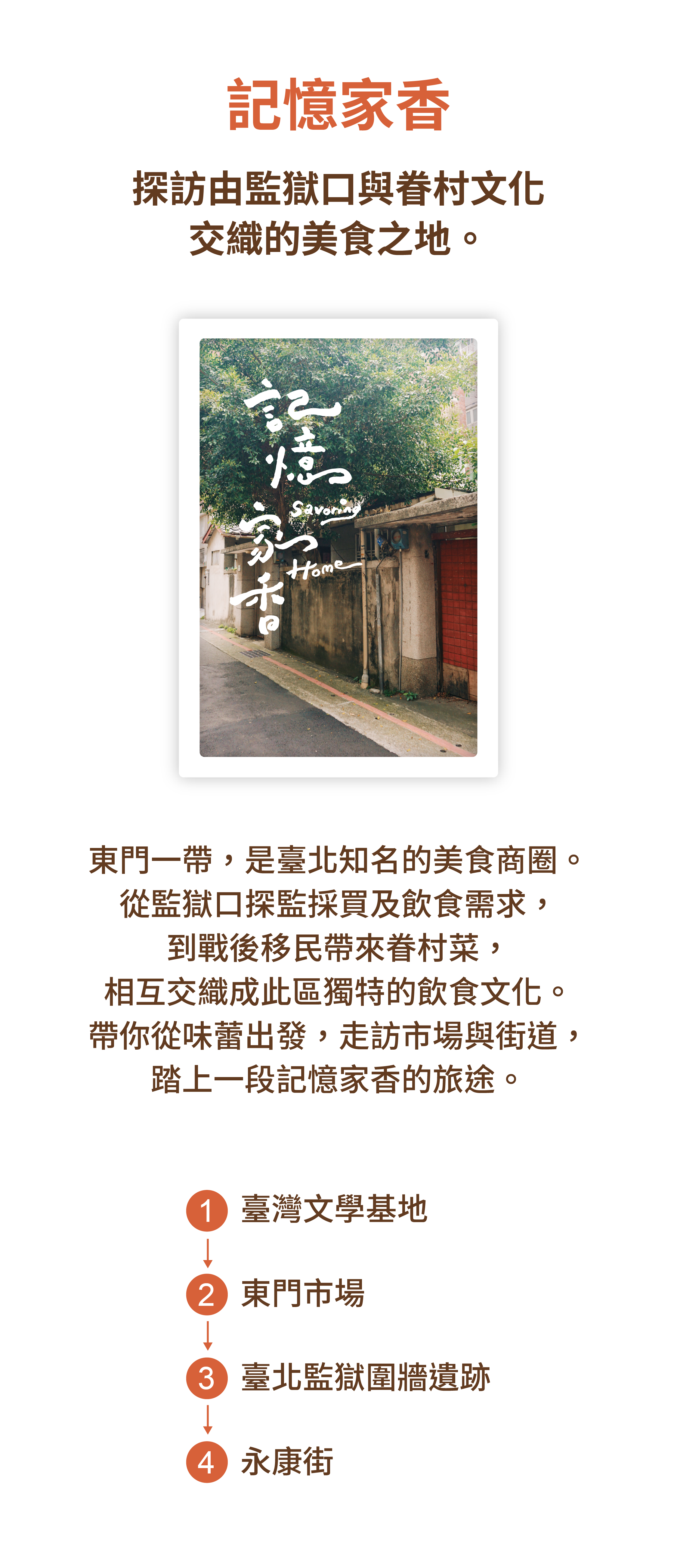 路線C〈記憶家香〉:東門市場、臺北監獄圍牆遺跡、永康街