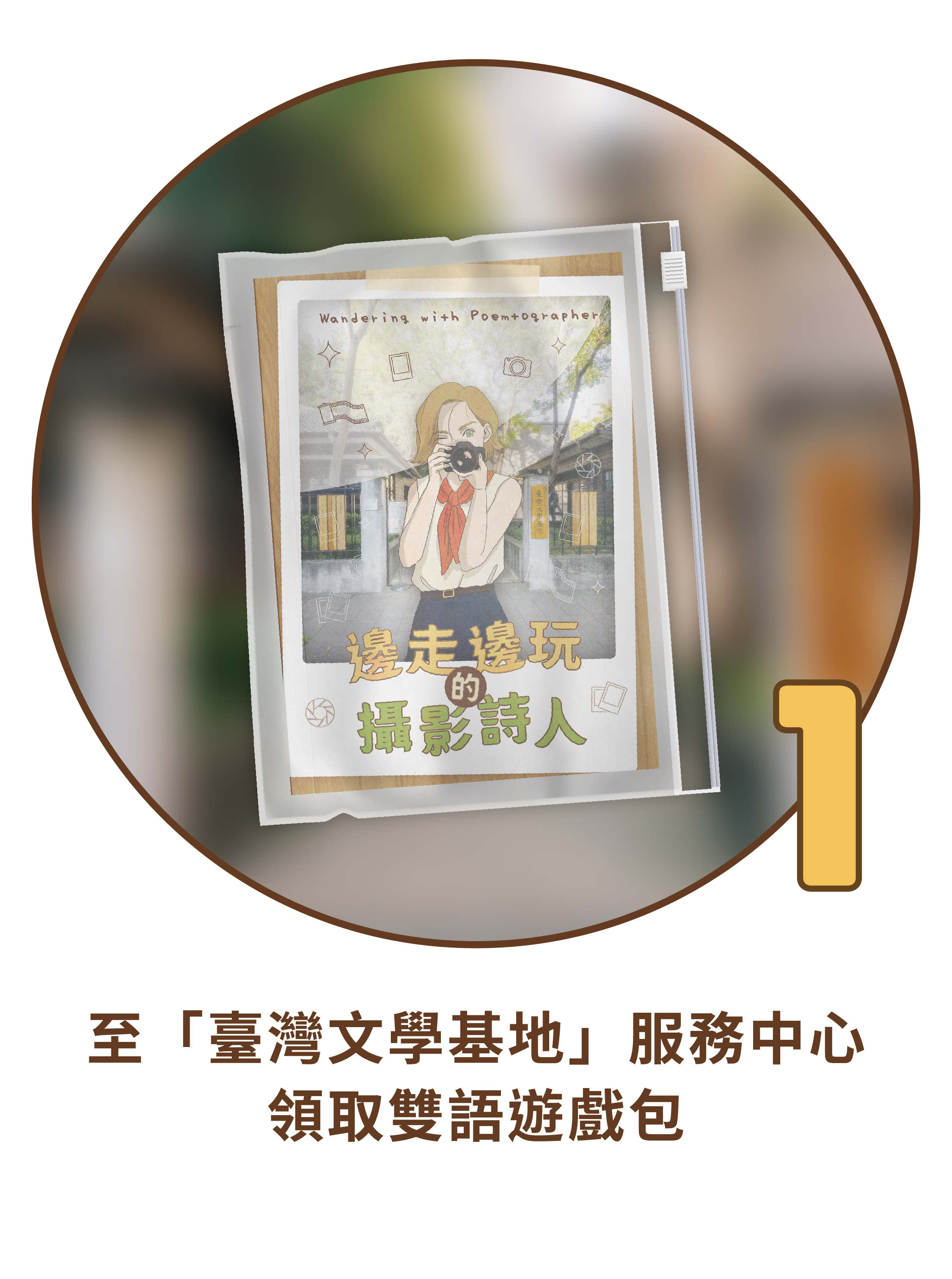 ➊ 至臺灣文學基地 Meta 粉絲頁按讚追蹤,或打卡標註「臺灣文學基地」,完成後出示畫面給遊客中心服務台人員,即可兌換。