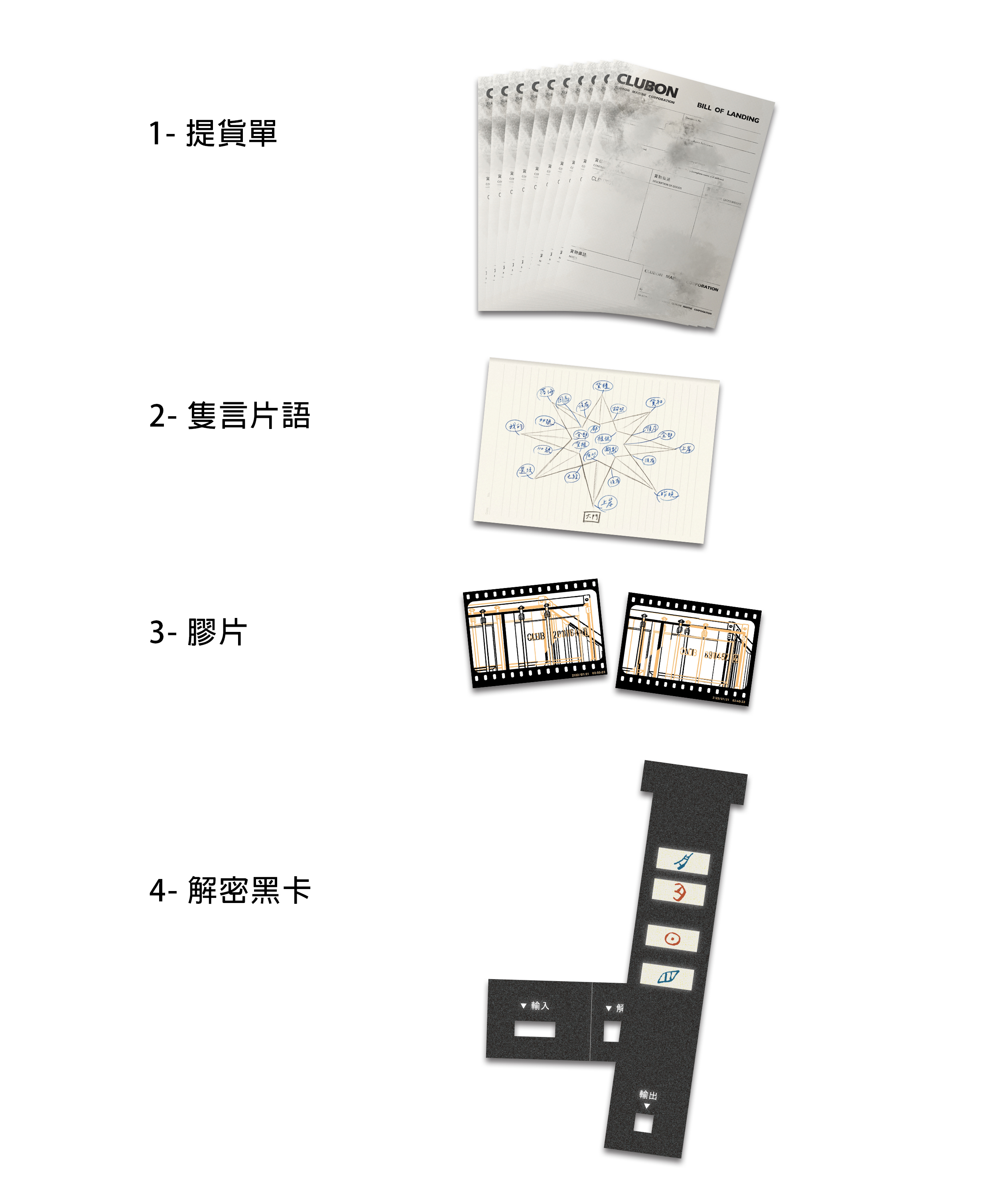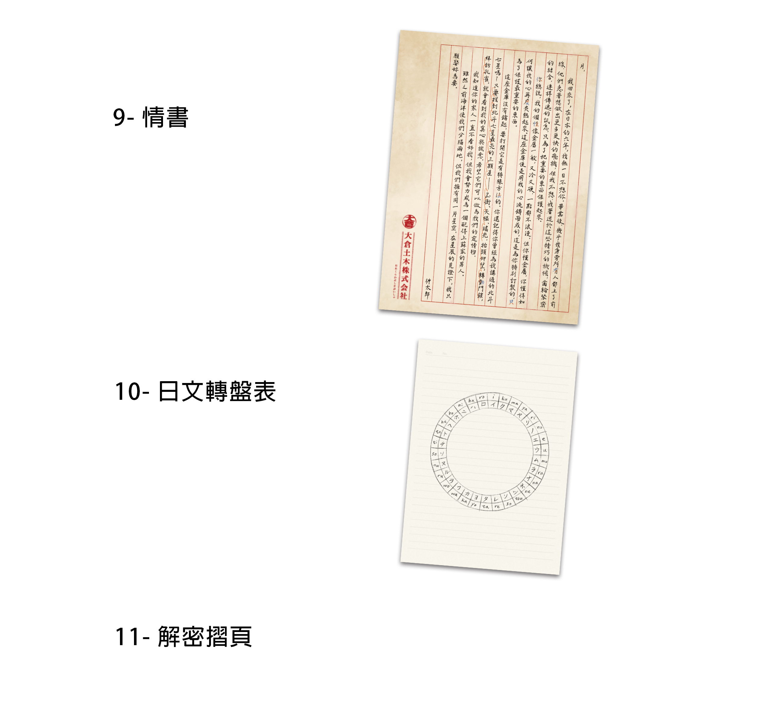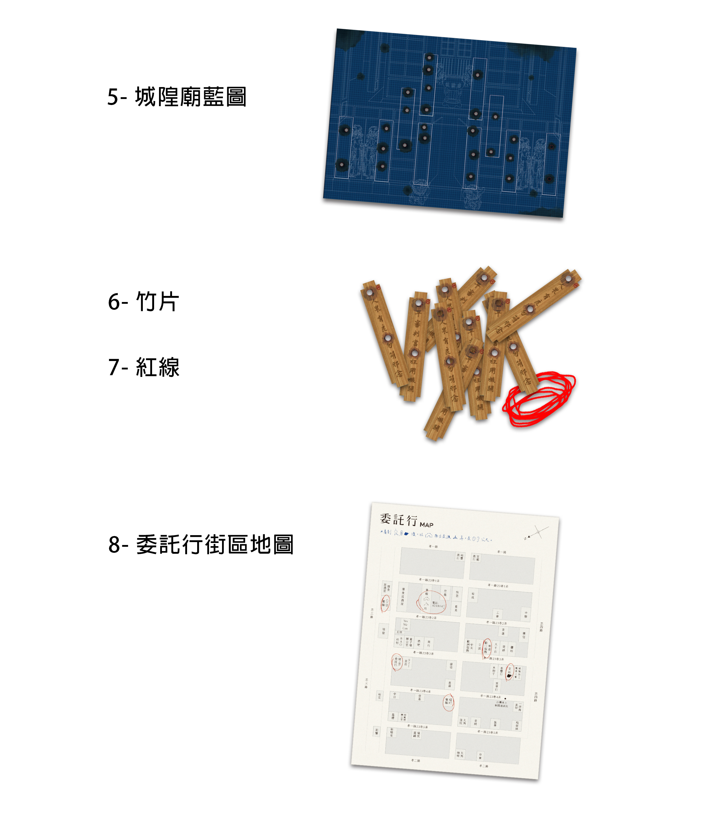 請確認遊戲盒中有下列 1~11 項道具。