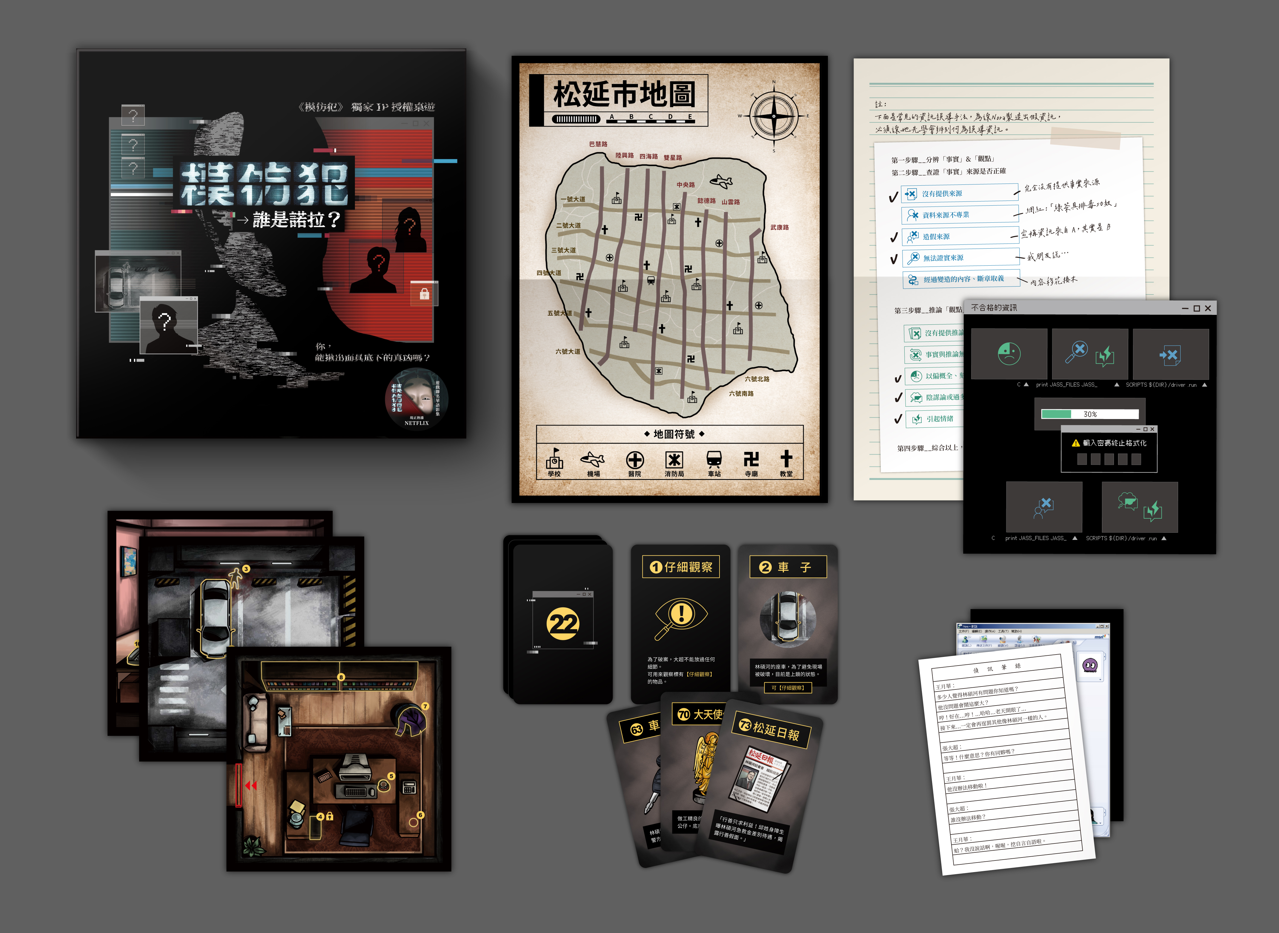 故事建構在《模仿犯》的世界觀上,但遊戲將經歷一套全然獨立的腳本,即使是沒有看過影集的玩家,也能隨著引人入勝的遊戲劇情,沈浸式體驗「桌上密室逃脫」與「懸疑推理」的絕佳樂趣!
