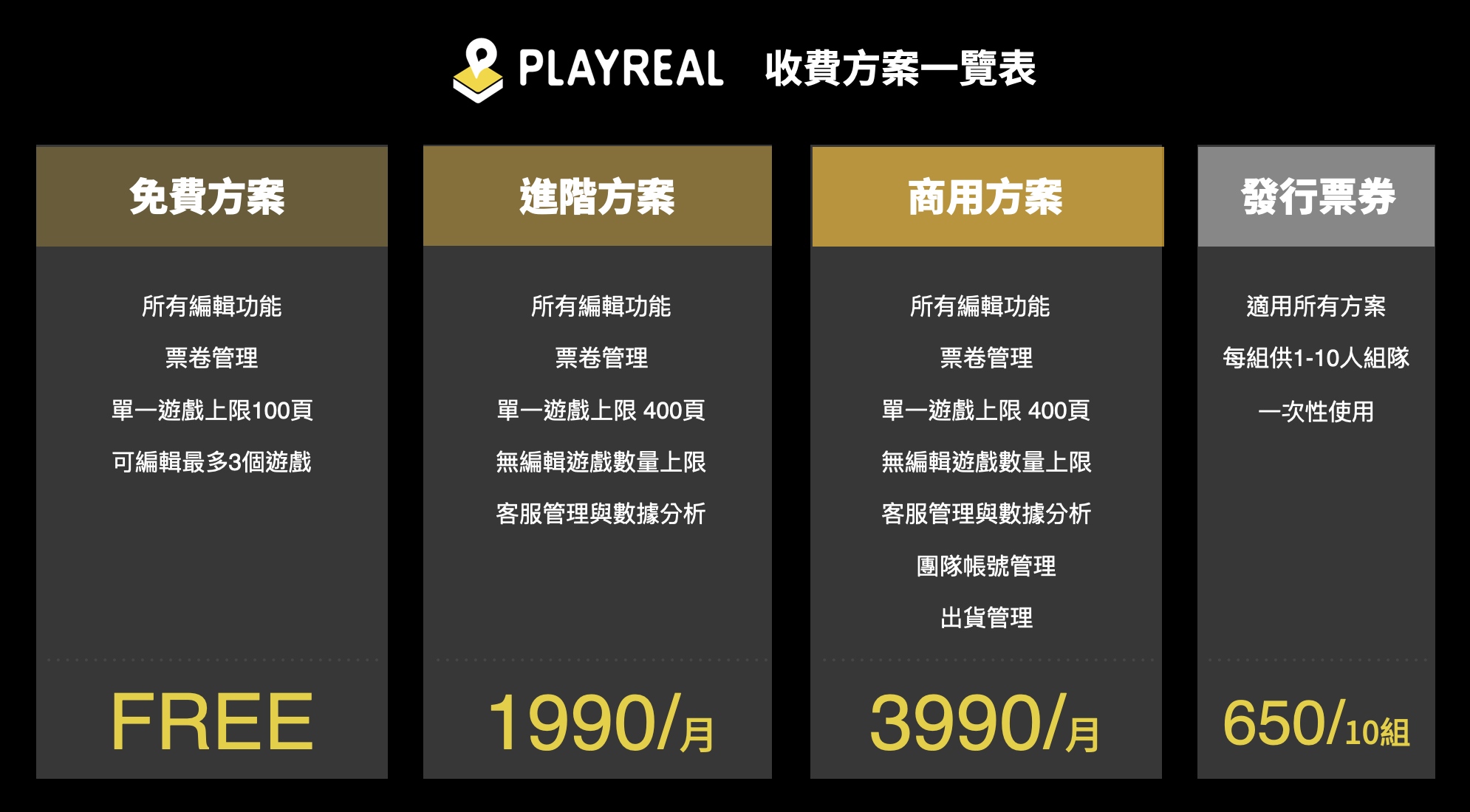 支付 3990 元/月,即可利用 PlayReal 實境遊戲引擎商用方案功能。